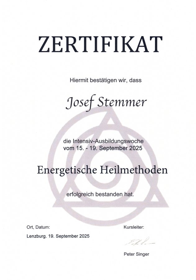 - September 2025 – Energetische Heilmethoden bei Peter Singer in der Schweiz